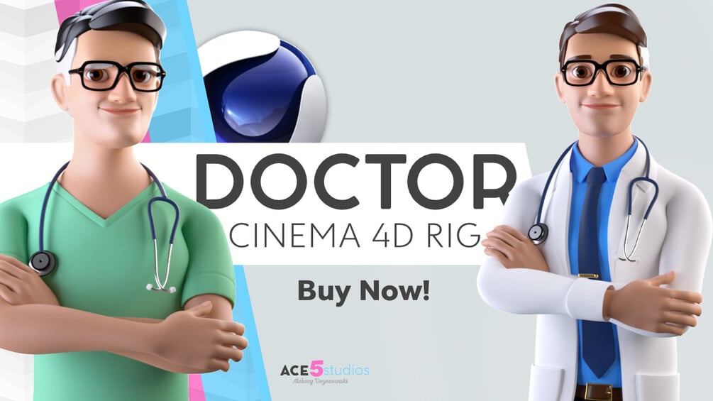 1x Rigged male Doctor character in cinema 4D