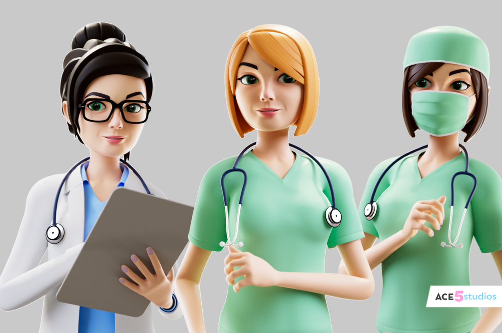 Doctor Nurse Melissa - C4D rig Cartoon Female woman